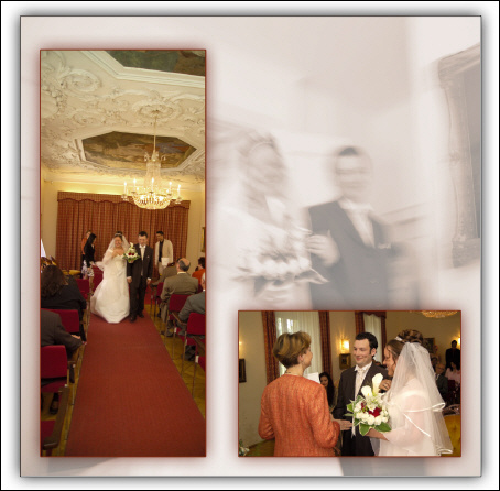 Diese Hochzeitszusammensetzungen gibt es wie bisher in's Album montiert. Aber anstelle von kleinen Bildern werden hier große "richtige" Fotos eingeklebt.
